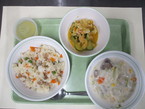 10/1 五穀ごはん 豚肉のみそ焼き じゃこサラダ 白菜としょうがのスープ |