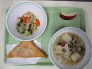 10/3 ごはん ハンバーグ バーベキューソース ブロッコリーのサラダ 野菜スープ |