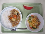 10/28 カレーライス コーンフレークサラダ 木島平村のりんご |