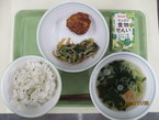【開校記念日】 菜飯 とりのからあげ 小松菜の梅和え お祝いすまし汁