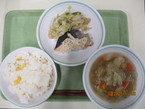 コーンごはん 鮭の粒マスタード焼き キャベツソテー 米粉マカロニスープ |