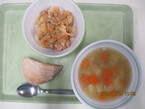 11/11 ケチャップライス 魚とチーズのつつみあげ ほうれん草のスープ |