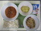 1/28 ソフトめん ミートソース なつかしの春雨サラダ フルーツきんとん |