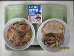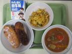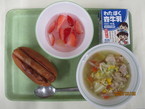 3/2 2色揚げパン(ココア・砂糖) 米粉のトマトシチュー コーンフレークサラダ |