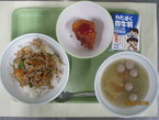 3/16 豚キムチチャーハン 野菜チップ ワンタンスープ |