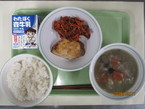 3/13 ごはん 豆腐ハンバーグ じゃこと野菜の和え物 豚汁 |