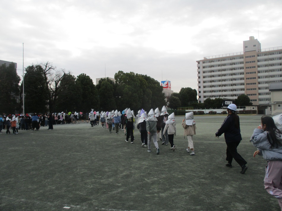 昼休みに火災が発生したことを想定した避難訓練を行いました。