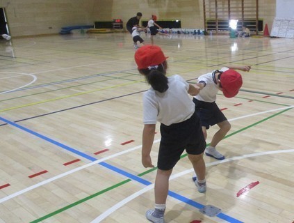 いろいろな動きにチャレンジ!(2年生 体育) 2025年9月29日 2年生が、体育の授業で「多様な動きをつくる運動遊び」に取り組みました。 体を移動する動きやバランスをとる動き、力試しの動き、ボールやフラフープを使った動きなど、様々な運動に挑戦しました。子供たちは、友達と関わり合いながら工夫したり、おもいっきり体を動かしたりする中で、新しい動きに気付いたり、自分なりの遊び方を広げたりしていました。笑顔いっぱいに活動する姿から、運動する楽しさを味わっていることが伝わってきました!