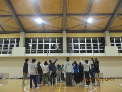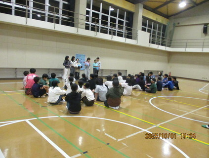 夕食後は、天候の関係で予定していたナイトハイキングを明日に延期し、室内レクレーションを楽しみました。友達と協力しながら元気に活動し、1日目を終えることができました。