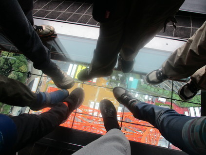 また、ガラスの上に立って下の景色をのぞくと、「高い!」「すごい!」と歓声が上がり、みんなで足をガラスに乗せて楽しむ姿も見られました。