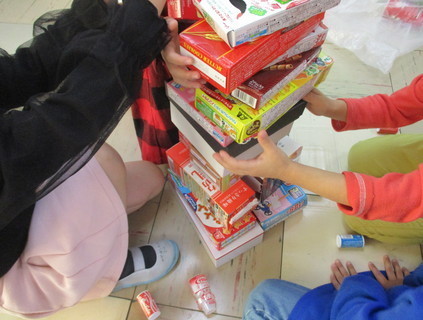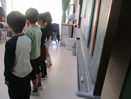 1年生の算数では、形遊びの学習に取り組んでいました。立体図形の特徴を踏まえながら、箱を積み重ねて形をつくる活動に夢中になっていました。「高く積めたよ」「この形、おもしろいね」と、友達と協力しながら楽しそうに学ぶ姿が見られました。教科担任制ウィークでは、1・2年生においても、学年を3つのグループに分けて、少人数で学習を展開しています。