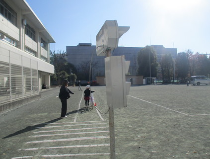 また、調布警察署の方や保護者の皆様にもご協力いただき、安全な乗り方について動画を視聴したり、実技練習を行ったりしました。発車前の「右・左・右後ろ」の確認、横断歩道の正しい渡り方、道路標識を確かめてからの一時停止など、一つ一つポイントを意識しながら慎重に走行する姿が見られました。