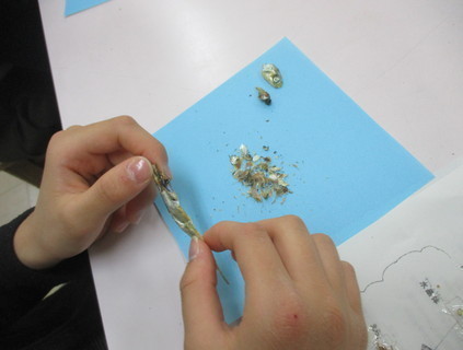 5年生は、チリメンジャコの中に、混じっている小さな生き物を探したり、煮干しの解剖に取り組んだりしました。煮干しを手に、魚の体のつくりをじっくり観察していました。