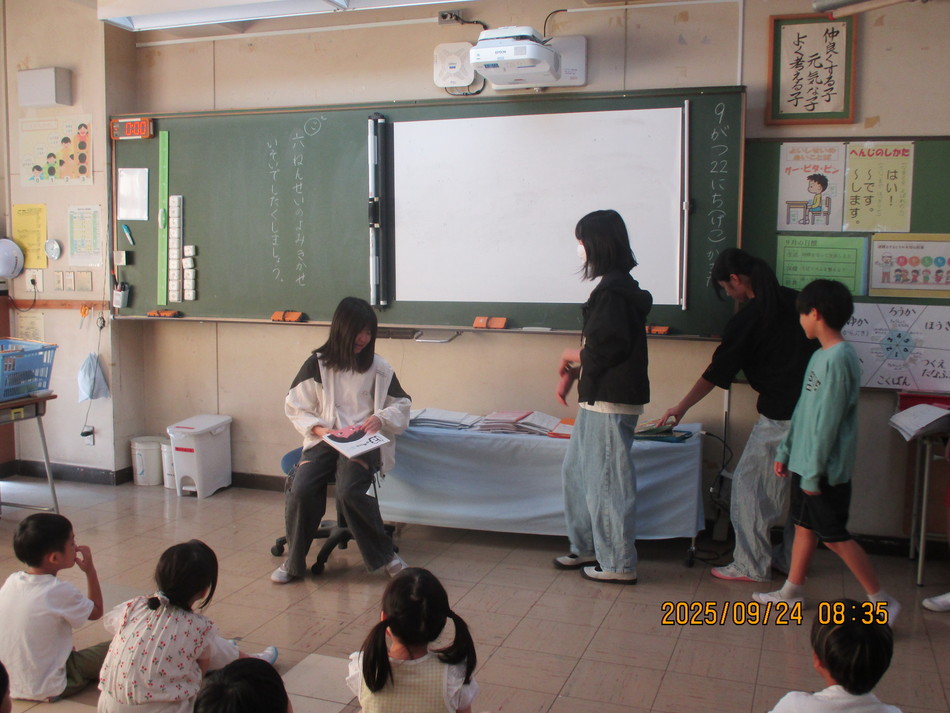 本日の読書タイムでは、6年生が1年生に本の読み聞かせを行いました。