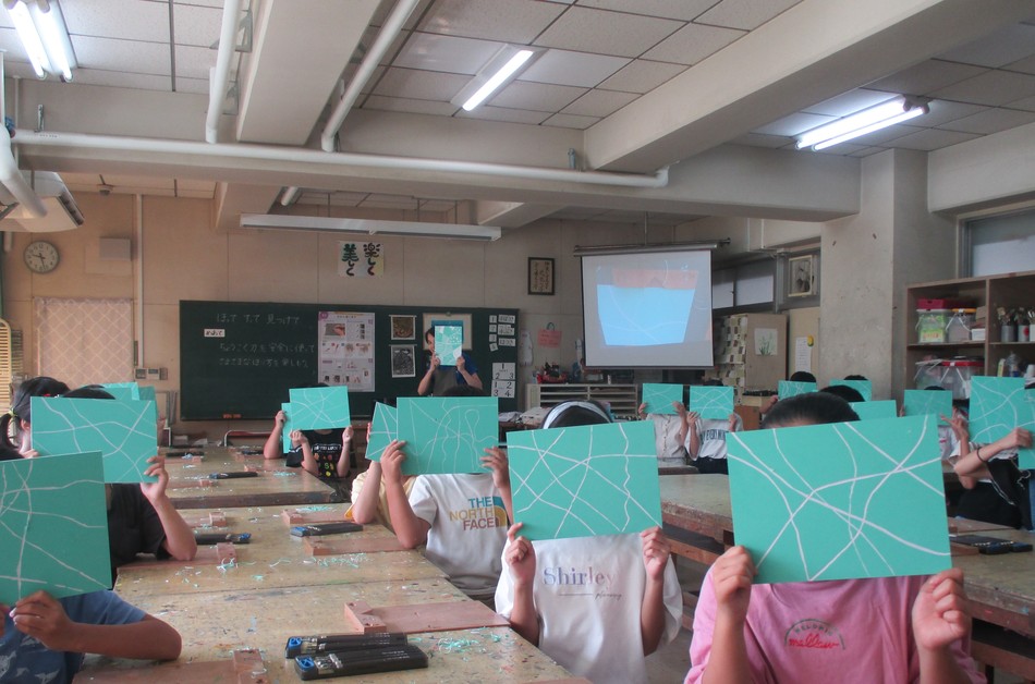 4年生が、図工「ほって、すって、見つけて」の学習に取り組みました。