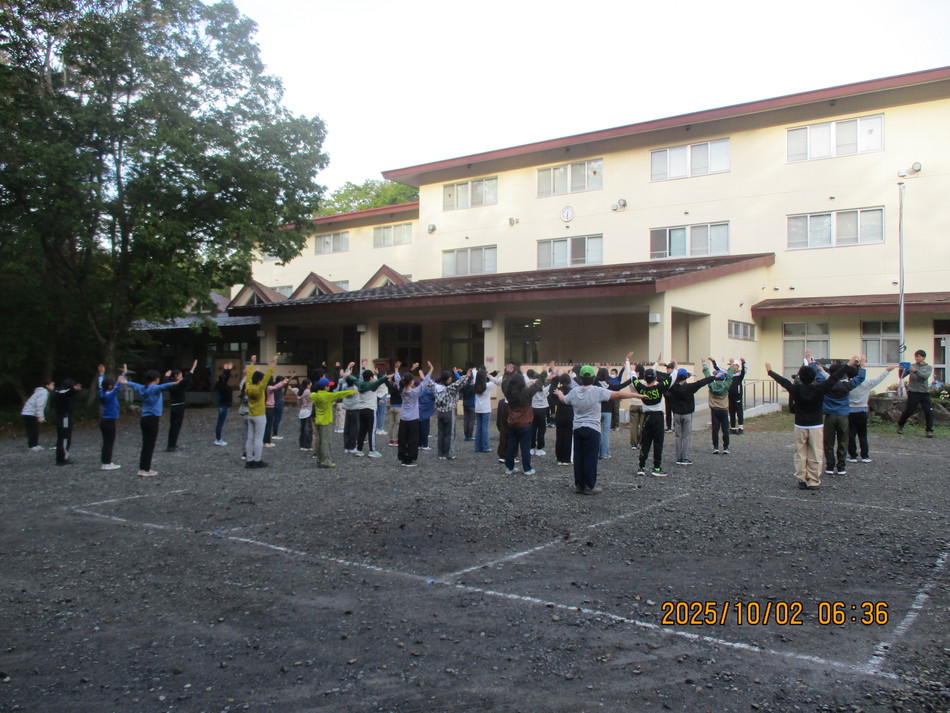 さわやかな朝、元気にスタート!(八ヶ岳移動教室 第2日①)