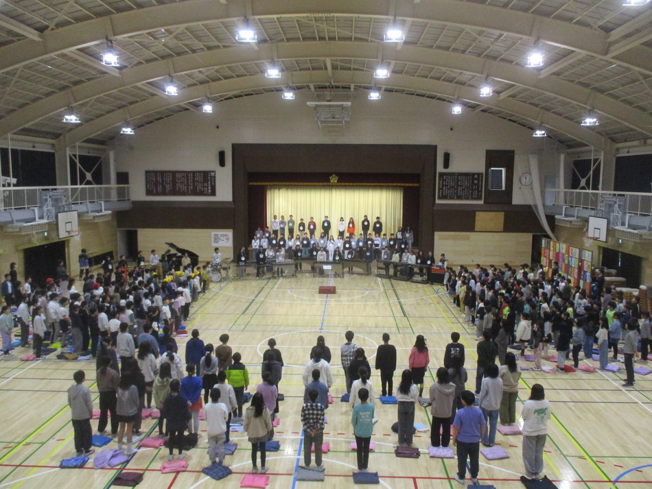 全校で「6年生を送る会」を行いました。