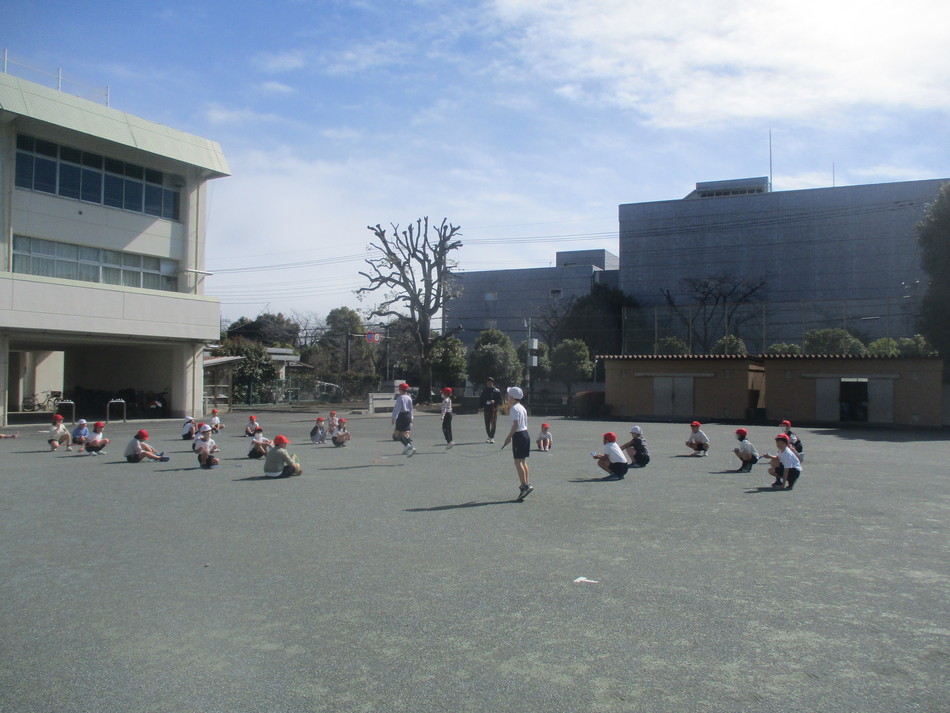 本校の校庭で、駿河台大学第一幼稚園の園児の皆さんが、リレー遊びを行いました。