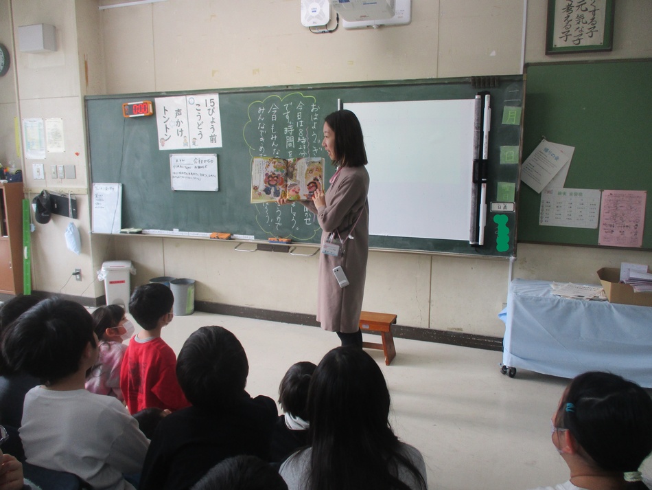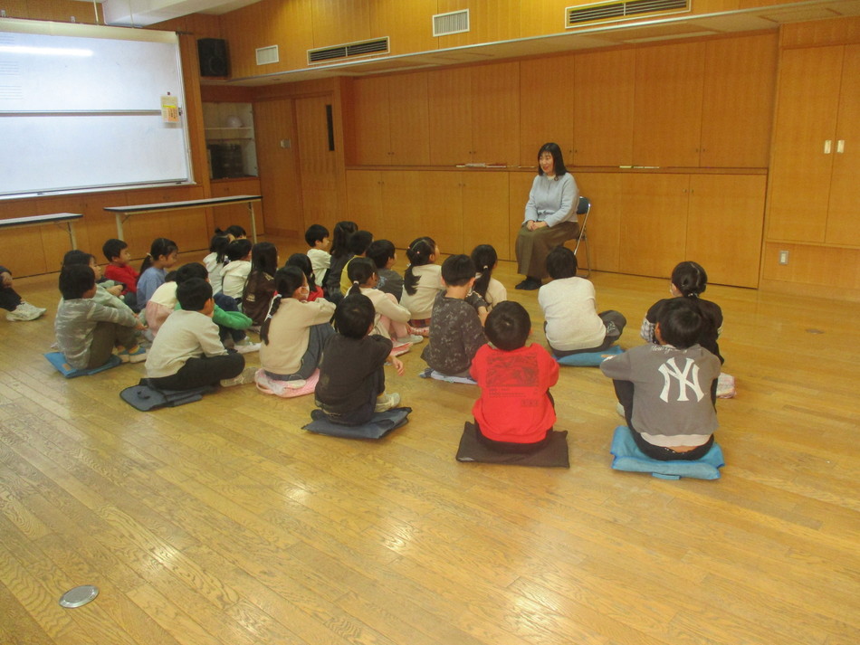 1・2年生を対象に、講師の先生をお招きし、ピアノ伴奏に合わせたリトミックを取り入れた読み聞かせを行いました。