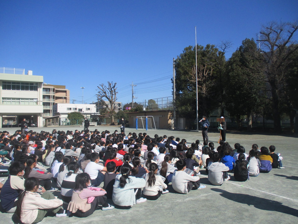 調布警察の方をお招きし、1年生を対象に交通安全教室を行いました。