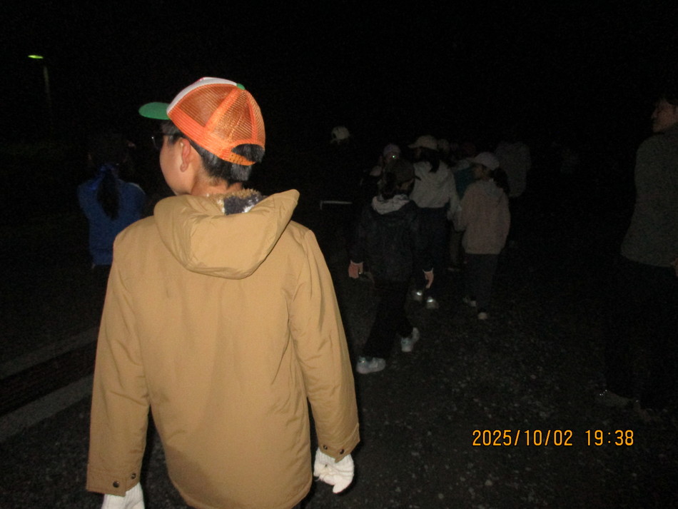 夕食後は、夜の活動として、自然の少年の家の周りをナイトハイキングしました。