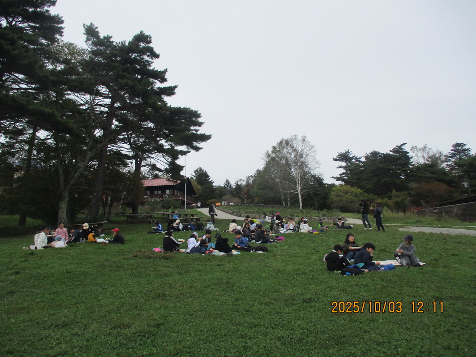 清泉寮で自然に囲まれながらお昼のお弁当を食べました。