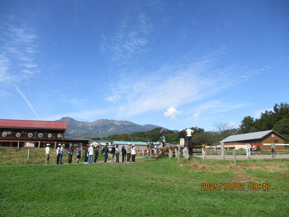 午前中は、滝沢牧場で乗馬体験や動物への餌やりなど、様々な体験活動を行いました。