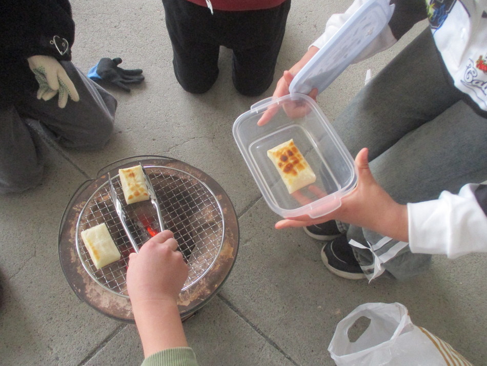3年生が、社会科「昔のくらし」の学習の一環として七輪体験を行いました。