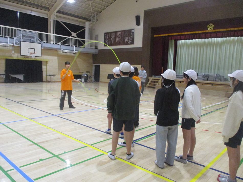 日本体育大学ダブルダッチ部の方々を講師としてお招きし、ダブルダッチの出前授業を行いました。