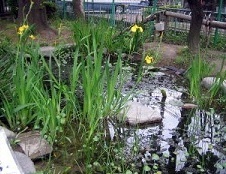緑ヶ丘小学校の周りには、昔の湿地だったようすは残っていないが、「みんなの森」など、わずかに自然が残っている。水がきれい、というわけにはいかないが、仙川も流れている。白百合女子大学の中には、見たことはないが、わき水もあるらしい。まだ、タヌキもすんでいるという話も聞いたことがある。 そのせいか、秋から次の夏前まで使わないでほうっておくプールには、毎年、ヤゴがたくさん育つのだそうだ。 いったい何種類のトンボが卵を産むのだろう。 また、そのトンボの分布は、他の地域とどうちがうんだろう。 しかし、水泳のために清掃をして、たまっていた水は全部流してしまうので、ヤゴも下水管へ流れていってしまう。池があれば移してあげられる、いや、池自体で卵がかえり、ヤゴが育つ。緑ヶ丘の四十年前の自然のほんの一部を、池を造ることでよみがえらせることができるかもしれないのだ