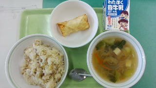 給食の時間に、6年生が各教室に来てくれました。