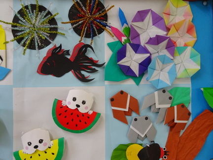 花火、金魚、アサガオ、ヒマワリ、スイカ、セミ、お祭り・・・などなど夏の風物詩が所狭しと並んでいます。