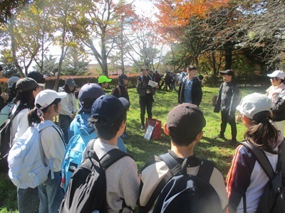 (5年生)八ヶ岳移動教室② 令和7年10月20日 清泉寮で、自然体験をしました。 グループに分かれ、レンジャー(自然解説員)の方々から自然の魅力見どころをガイドしていただきました!大自然の空気を吸いながら、笹舟を作ったり、草笛に挑戦したり、植物の特徴を生かして実験したりしながら貴重な体験をすることができました。