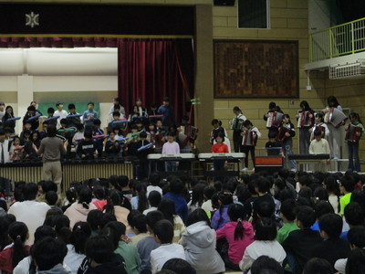 連合音楽会発表集会 令和7年12月2日 連合音楽会発表集会がありました。 5年生は5日に開催される連合音楽会に出席します。今朝の集会は、連合音楽会で発表する合唱と合奏の発表を聞きました。音楽の時間や休み時間にがんばってきた練習の成果が発表会当日に存分に発揮できますように!
