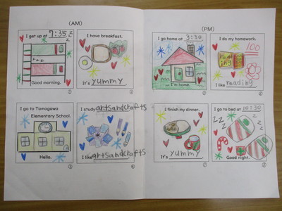 4年生 外国語活動 This is my day. 香港の小学生に贈ろう! 令和7年12月15日 「This is my day.」では、自分たちの一日の生活を、絵や簡単な英語で表しました。 今年度、香港のTai Po Old Market Public Schoolと手紙を通じて交流できることになり、これらにメッセージも添えて、送ります。 一人一人、素敵なものに仕上げました。 Very Christmassy🎄