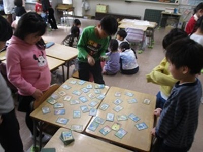 1年生と2年生が「昔あそび」を通して交流をしました。
