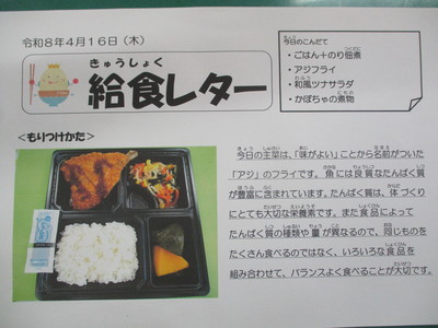 今日から1年生の給食が始まりました。
