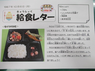 今日の給食(10月1日)
