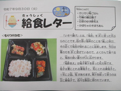 今日の給食(9月30日)