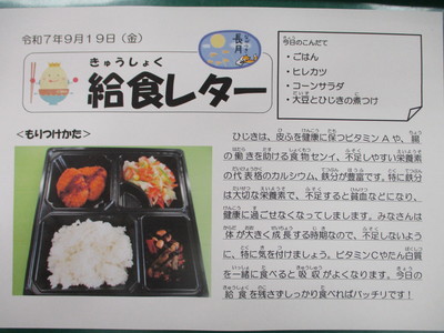 今日の給食(9月19日)