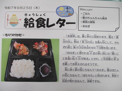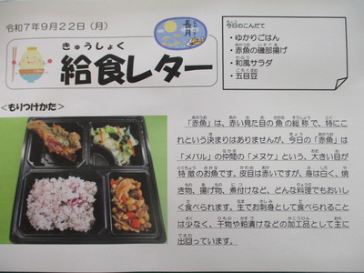 今日の給食(9月22日)