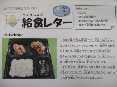 今日の給食(9月29日)
