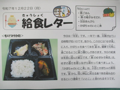 今日の給食(12月22日)