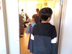 放送による発表なので、放送室前に集まり発表の練習をしました。「学年の代表はうれしいけれど、緊張する…。」「たくさん練習した!」など声が聞かれました。