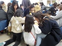 1年生は「おうちの方に学校のことを伝えよう」というテーマで保護者の方へ説明していました。これは以前に保育園との交流で保育園児に説明した内容です。保護者の方々は子どもたちの机に近寄りしっかり説明を聞いています。説明が終わればゲームをしたり絵本を読んであげたりしています。堂々と説明する子どもたちを見て保護者の方も笑顔になります。