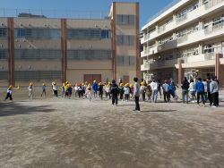 昼休みになると子どもたちが校庭に集まってきました。