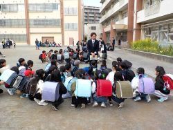 次に、新しい学年、学級で整列をして始業式がはじまりました。