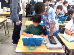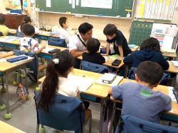 子どもたちは、たくさんの先生たちに囲まれながらも、自分の考えを表現し友だちの考えを聞き、生き生きと授業に取り組みました。