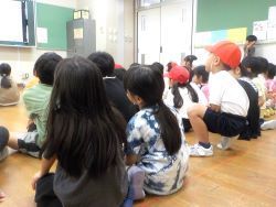という楽しい内容のお話に子どもたちはたちまち夢中で見入っていました。