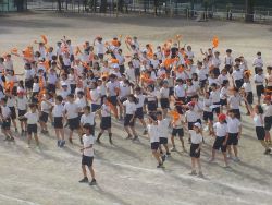 5年生は、自分たちが決めた学年目標をどのように身体で表現するかを考えながら、オリジナルの表現運動を創る活動に取り組んでいます。